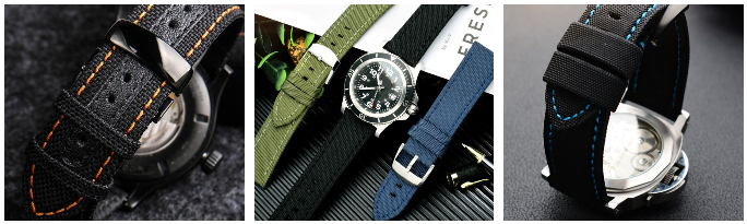 腕時計をダサく見せない軍事風帆布織り込み式ナイロンベルト