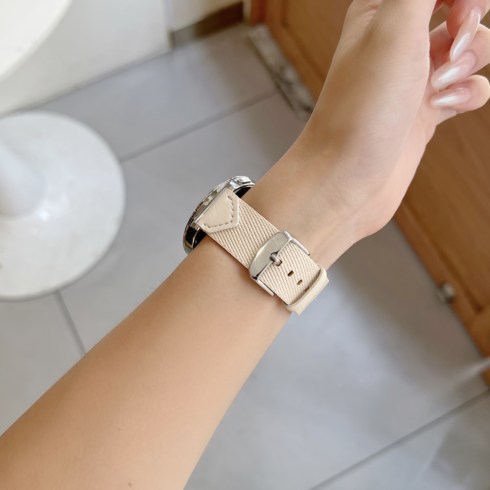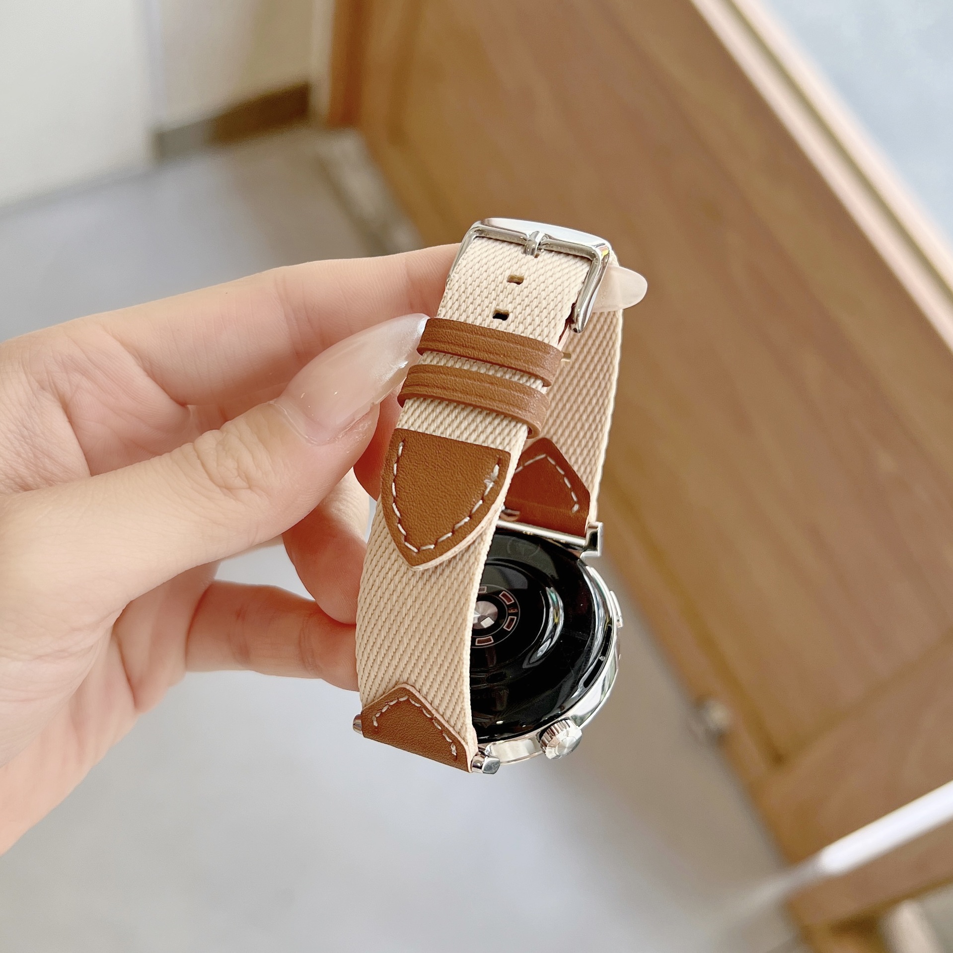上質なナイロン素材に本革パーツを組み合わせた腕時計ベルトです。