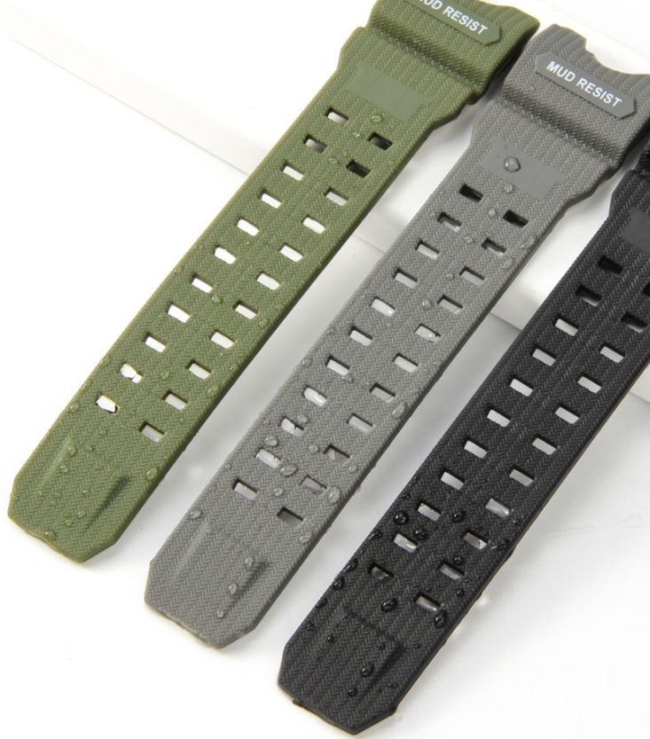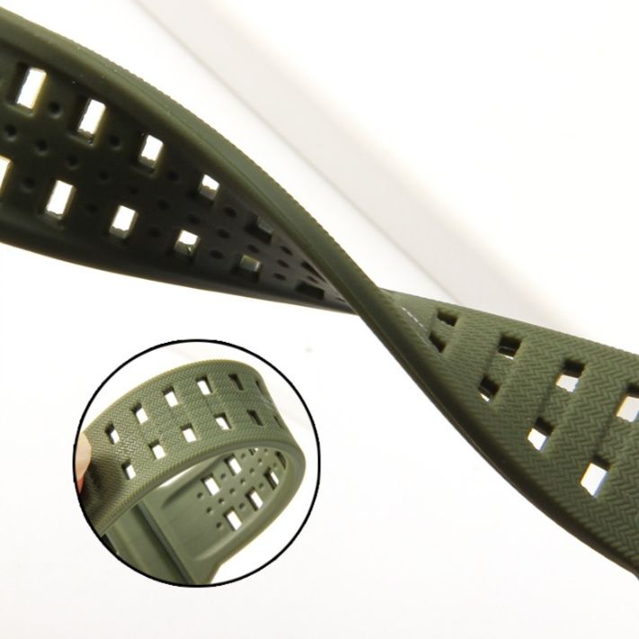 立体的な縦縞模様が施された高品質なシリコンゲル素材の腕時計ベルトです。ラバー特有の柔軟性と耐久性を兼ね備え、スポーツやアウトドアシーンでも快適な装着感を実現します。