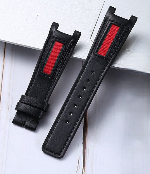 上質な革を使用した腕時計ベルトに、洗練されたストライプテープを装飾した個性的なデザインが特徴です。